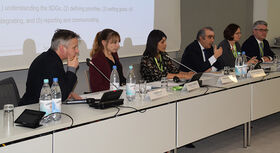 BIBB-Forschungsdirektor Prof. Ertl moderierte am 3. Dezember die abschließende Paneldiskussion. Dabei kamen mit Borhene Chakroune (Director, Policy and Lifelong Learning Systems, UNESCO), Cesare Onestini (Leiter, European Training Foundation), Dana Bachmann (Head of Unit, VET, Apprenticeship and Adult Learning, European Commission), Ina von Frantzius (Leitung des Arbeitsbereichs Bildung, Bundesministerium für wirtschaftliche Zusammenarbeit und Entwicklung) und Milagros Lazo Castro (Technical Officer, International Labour Organisation) erfahrene Köpfe aus der Berufsbildung zu Wort. Sie ließen die Diskussionen und Gespräche der letzten beiden Tage Revue passieren und stellten aus der Perspektive von internationalen Organisationen mögliche Strategien für eine bessere Vernetzung der an Innovationen in der beruflichen Bildung beteiligten Akteure vor.
