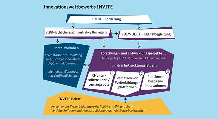 Mit dem Innovationswettbewerb INVITE förderte das frühere Bundesministerium für Bildung und Forschung (BMBF) deshalb bildungstechnologische Innovationen, welche die Suche nach passfähigen Weiterbildungsangeboten erleichtern, die Nutzerorientierung von Weiterbildungsplattformen stärken, und das Angebot KI-unterstützter Weiterbildungsangebote vergrößern sollten.