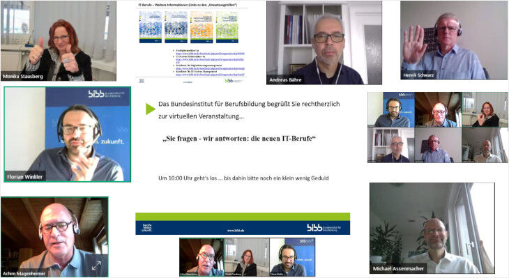 Auf große Resonanz stieß die virtuell durchgeführte Veranstaltung „Sie fragen – wir antworten: die neuen IT-Berufe“, die das BIBB am 10.12.2020 durchgeführt hat. Über 250 Teilnehmerinnen und Teilnehmer aus verschiedenen Praxisfeldern der IT-Aus- und Weiterbildung nahmen an der Veranstaltung teil, stellten Fragen und informierten sich über das Ergebnis der Neuordnung und den Implementationsprozess der neuen IT-Berufe.
