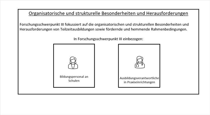 Ziel des Projekts ist es, einen systematischen Überblick über die Angebotsstruktur der Teilzeitausbildungen zu erhalten, die Rahmenbedingungen, Voraussetzungen sowie die Herausforderungen und Umsetzungsparameter aus der Perspektive verschiedener beteiligter Akteure zu untersuchen. Zu den Beteiligten zählen Schulleitungen, Lehrkräfte, Entscheidungs- und Verantwortungstragende in Einrichtungen, Praxisanleitende und Auszubildende in Teilzeit.