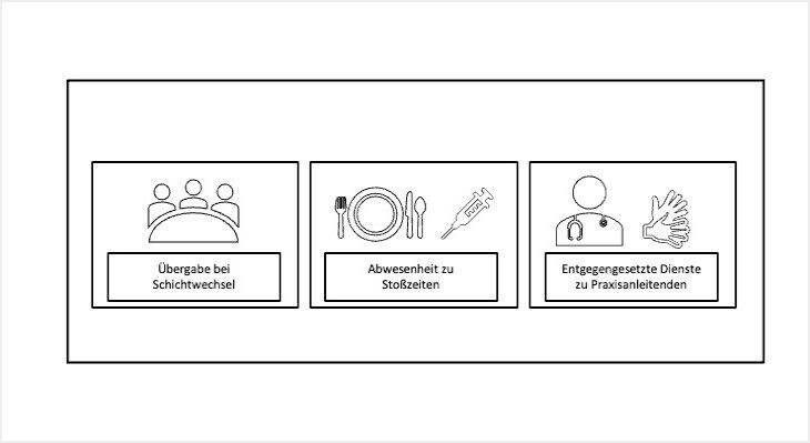 Durch verkürzte und/oder angepasste Schichtzeiten kann es zu verschiedenen Herausforderungen in den Praxiseinrichtungen kommen. Zum einen sind Teilzeitauszubildende bei Pflegeübergaben ggf. noch nicht anwesend, sodass sie bei ihrem Dienstbeginn ein erneutes Übergabegespräch benötigen bzw. einfordern. Zum anderen können sie durch die veränderten Dienstzeiten bei Stoßzeiten nicht immer anwesend sein (vgl. Netzwerk Teilzeitausbildung Baden-Württemberg 2020, S. 18). Darüber hinaus kann es in Einzelfällen problematisch sein, wenn die Praxisanleitenden auf den Stationen ausschließlich in entgegengesetzten Schichtdiensten zu den Teilzeitauszubildenden arbeiten.