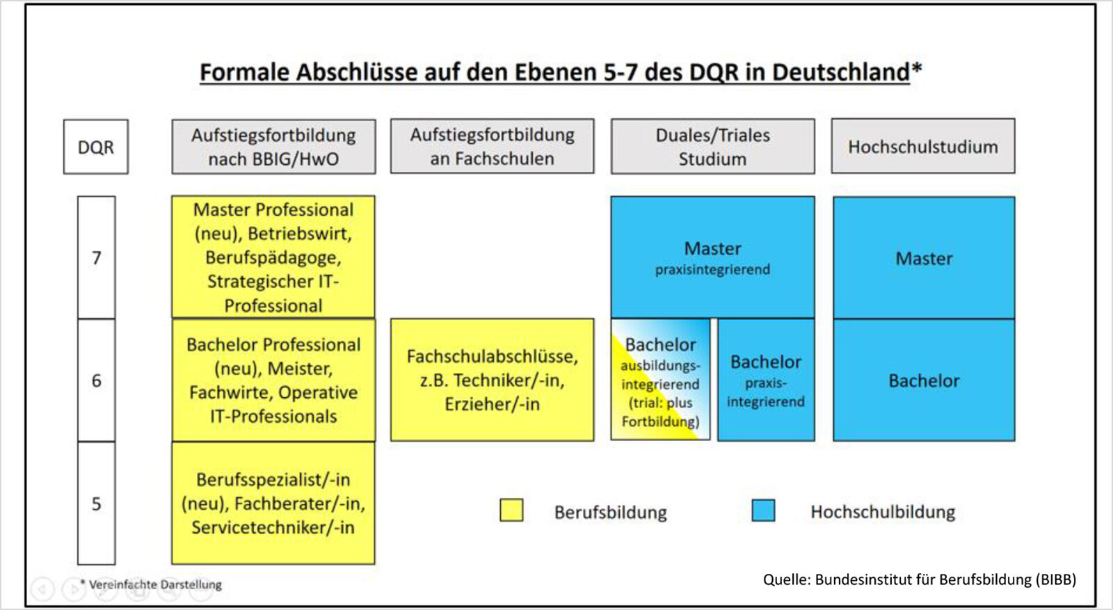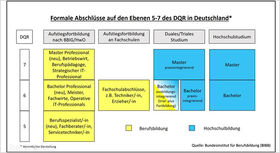 Die drei Fortbildungsstufen sind an die Ebenen 5 bis 7 des DQR angelehnt, dem die formalen Qualifikationen in Deutschland zugeordnet sind. Die Zuordnung erfolgt allerdings erst im Nachgang zur Erarbeitung des Verordnungsentwurfes. Dem DQR zugeordnete Abschlüsse der zweiten Fortbildungsstufe sind gleichwertig zu akademischen Bachelorabschlüssen und die Abschlüsse der dritten Fortbildungsstufe stehen auf einer Ebene mit den akademischen Masterabschlüssen.
