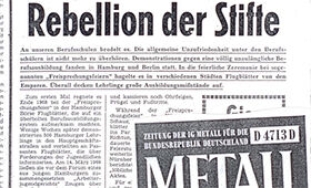 Typisch sind in Gewerkschaftszeitungen jener Jahre Berichte, in denen die Situation der Lehrlinge beklagt wird. So heißt es unter der Überschrift "Rebellion der Stifte" im Frühjahr 1969 in der Gewerkschaftszeitung "Metall":
