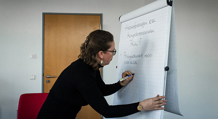 Beratungs- und Teamkompetenzen im Skills Lab prüfen war der Titel des dritten Workshops. Wie im Projekt ermittelt werden konnte, stellt das Zeigen von Beratungs-, Anleitungs- und Teamkompetenzen in einer praktischen Prüfung viele Auszubildende vor große Herausforderungen, da diese Kompetenzbereiche in der Praxis häufig unzureichend geübt und reflektiert werden. Insofern eignet sich das Skills Lab gut dazu, diese Kompetenzen in einem simulierten Prüfungsteil zum Vorschein zu bringen. Im Workshop sollten Möglichkeiten und Grenzen von simulierten Prüfungsteilen reflektiert werden. Die Teilnehmenden befanden das Skills Lab als guten Ort zum Üben und Wiederholen, zur Prüfungsvorbereitung und für die Abnahme von Zwischenprüfungen. Als gewinnbringend wurde die Standardisierung und der Einsatz von Simulationspatient/-innen eingeschätzt, da mit ihnen reale Interaktionen möglich seien. Einschränkungen bei dieser Prüfungsform wurden im hohen Ressourcenaufwand gesehen.