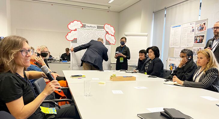 Im Workshop „Gemeinsam mit Azubis die Zukunft gestalten - die große Chance für Unternehmen und Berufsschulen“ machte BIBB-Nachhaltigkeitsexpertin Barbara Hemkes deutlich, dass eine nachhaltige Wirtschaft Arbeit und Ausbildung als zentrale Bereiche der Transformation erkennen und nutzen muss.