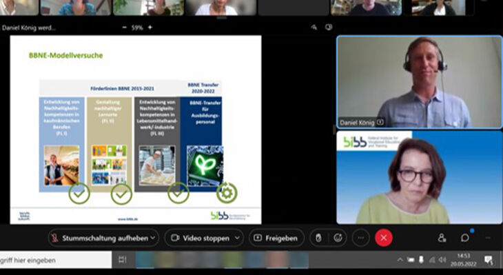 Am 20. Mai trafen sich erneut Akteure der BBNE zum intensiven Austausch. Dr. Daniel König (BIBB) gab eine Vorschau auf anstehende neue Förderungen. Das Partnernetzwerk BBNE ist eingebettet in das Weltaktionsprogramm „Education for Sustainable Development: Towards achieving the SDGs" (ESD for 2030).