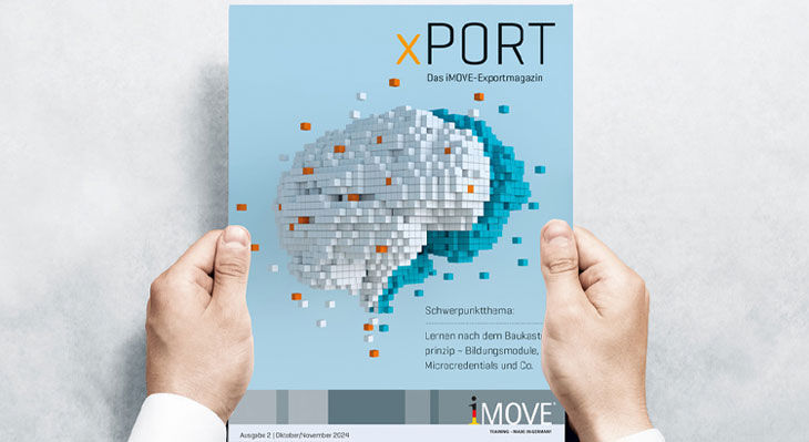 In der neuen Ausgabe von xPORT berichten Expertinnen und Experten aus dem Kreis der Bildungsexportwirtschaft über ihre Erfahrungen zum „Lernen nach dem Baukastenprinzip – Bildungsmodule, Microcredentials und Co.“. xPORT 2/2024 steht im iMOVE-Portal kostenlos als Download zur Verfügung.