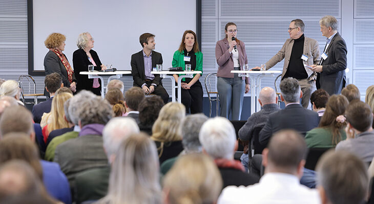 Die Teilnehmerinnen und Teilnehmer erwartete ein vielfältiges Programm mit unterschiedlichen Formaten, das Raum für inhaltliche Tiefe und interaktiven Austausch bot. Neben inspirierenden Keynotes renommierter Expertinnen und Experten, wurden Diskursräume geschaffen, in denen zentrale Fragestellungen vertieft diskutiert wurden. Paneldiskussionen ermöglichten den Austausch zwischen verschiedenen Akteuren der beruflichen Bildung – von Auszubildenden und Ausbildungspersonal über Fachdidaktiker bis hin zu Berufsbildungspolitikern. Diese vielfältigen Formate und die begleitende Ausstellung „Ideenschmiede“ boten die Gelegenheit, praxisnahe Ansätze und Best-Practice-Beispiele für die Umsetzung von Demokratiebildung gemeinsam zu erarbeiten und den Diskurs weiter voranzutreiben.