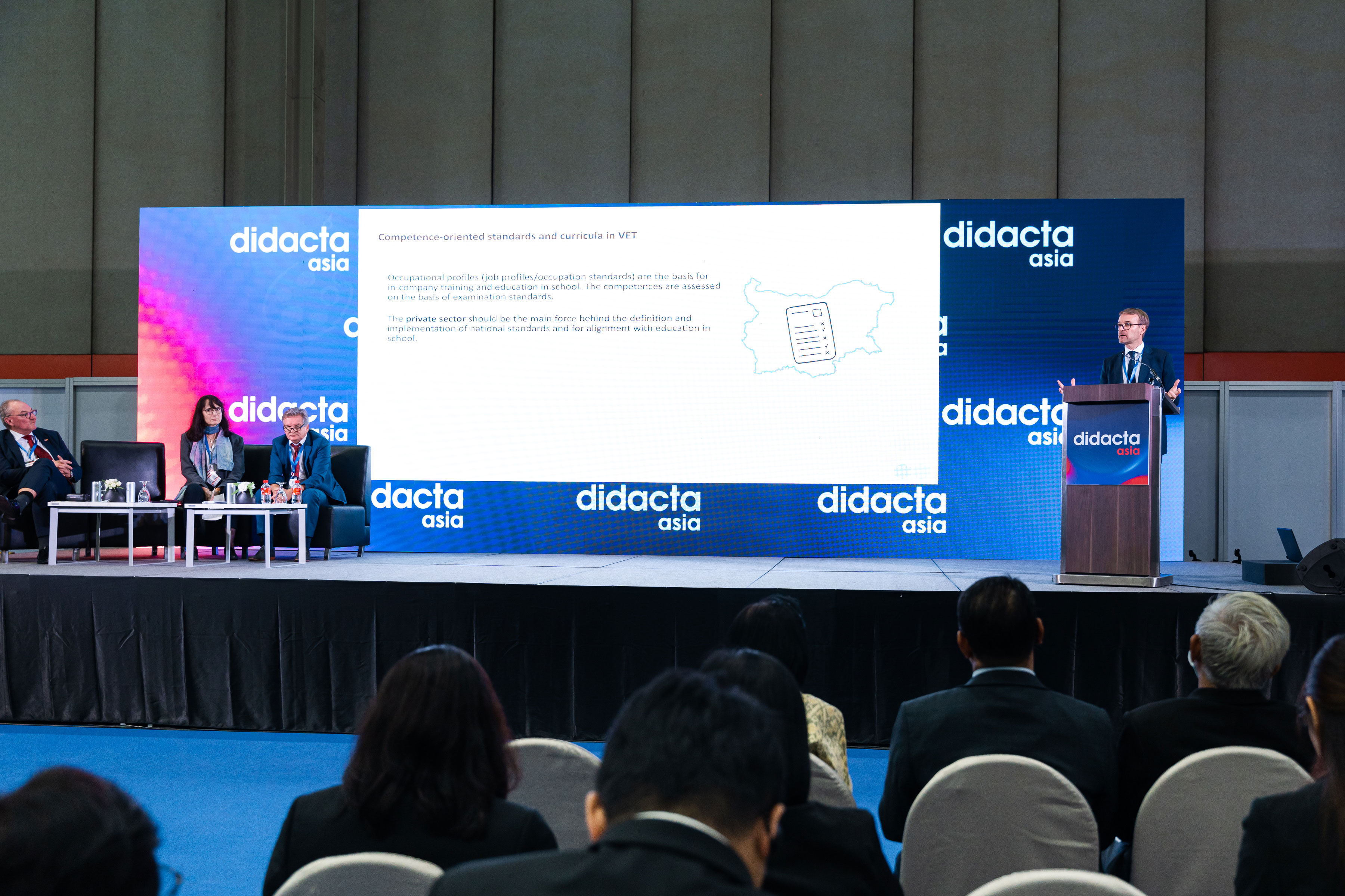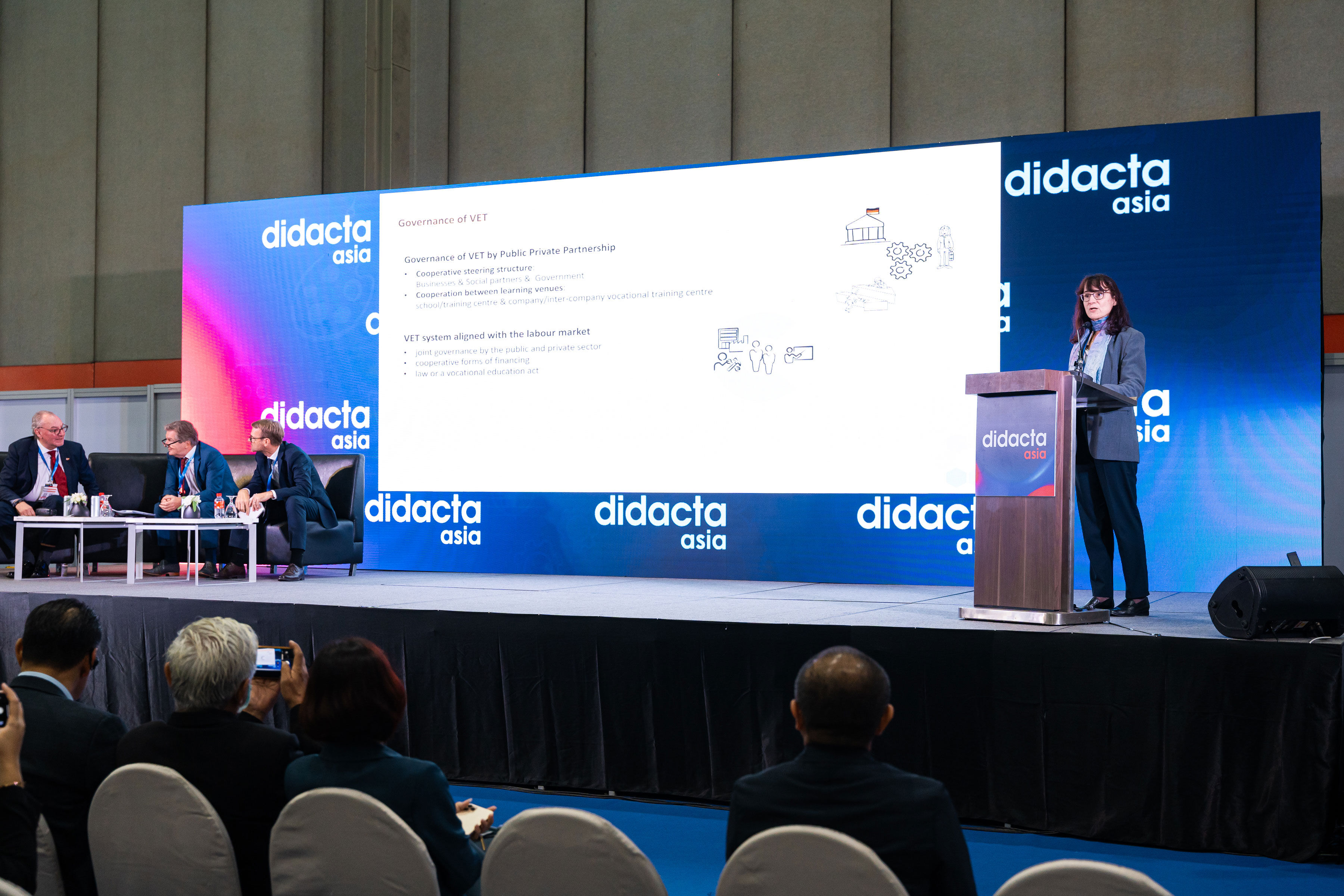 Erstmalig präsentierten die führenden Institutionen der deutschsprachigen Länder in der dualen Berufsbildung ihr gemeinsames Beratungsangebot als Alliance for dual VET – Swiss-Austrian-German advisory services beim European-Asian-Pacific Dialogue Forum auf der Didac Asia 2024 in Bangkok.