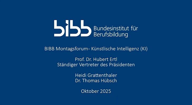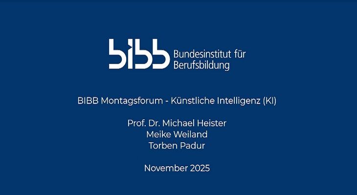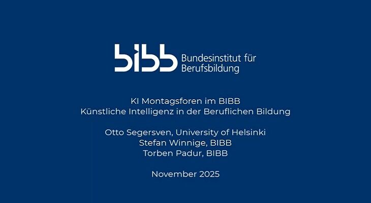 Im Juni und November 2025 beleuchtete das Bundesinstitut für Berufsbildung (BIBB) im Rahmen der digitalen Veranstaltungsreihe „Montagsforum KI“ zentrale Aspekte rund um den Einsatz und die Wirkung von Künstlicher Intelligenz in der beruflichen Bildung.
