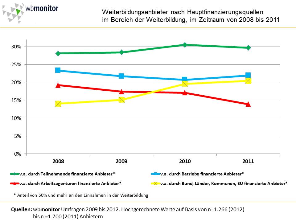 Das negative Wirtschaftsklima der überwiegend Arbeitsagentur finanzierten Anbieter korrespondiert mit einem Bedeutungsverlust dieses Weiterbildungsfinanziers, mit Berichten über gesunkene Einnahmen sowie der Erwartung eines Personalabbaus.