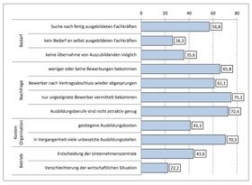 Dabei sind besonders Kleinstbetriebe, ostdeutsche Betriebe und – abgesehen von der Bau- und Landwirtschaft – Dienstleistungsbereiche wie der Einzelhandel und das Gastronomie- und Beherbergungsgewerbe besonders betroffen. Offen ist dabei, wie in Zukunft mit Schulabsolventen, die über niedrigere Schulabschlüsse wie dem Hauptschulabschluss verfügen, sich aber in ausreichender Zahl um eine Ausbildungsstelle bemühen, umgegangen werden soll. Ihnen werden weiterhin nur geringe oder verzögerte Chancen zum Einstieg in eine Ausbildung eingeräumt.7