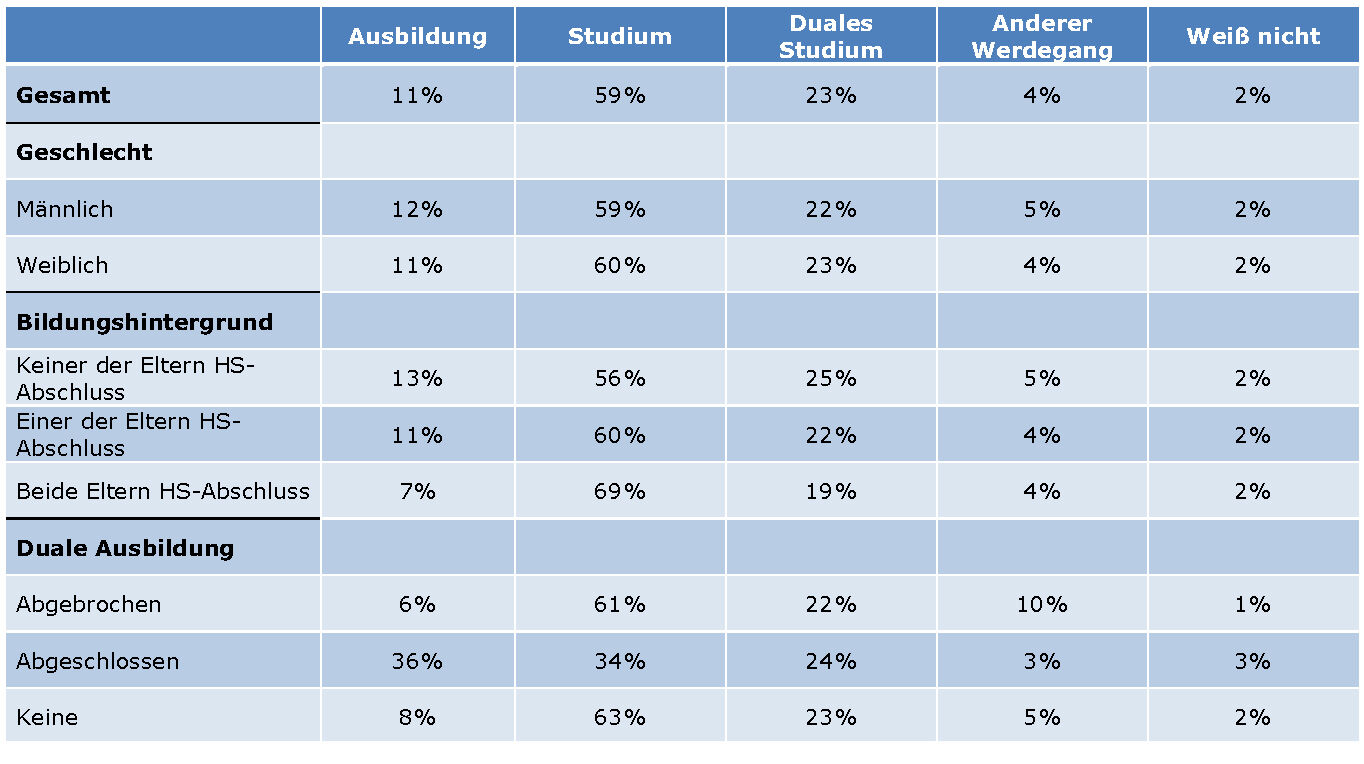 - Erwartungen im Vergleich Ausbildungsabschluss - Hochschulabschluss