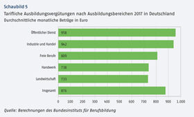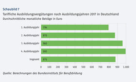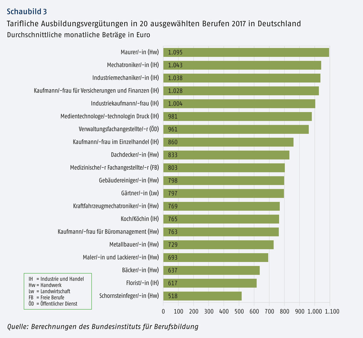 Im Jahr 2017 variierte die Vergütungshöhe zwischen den einzelnen Ausbildungsberufen beträchtlich,