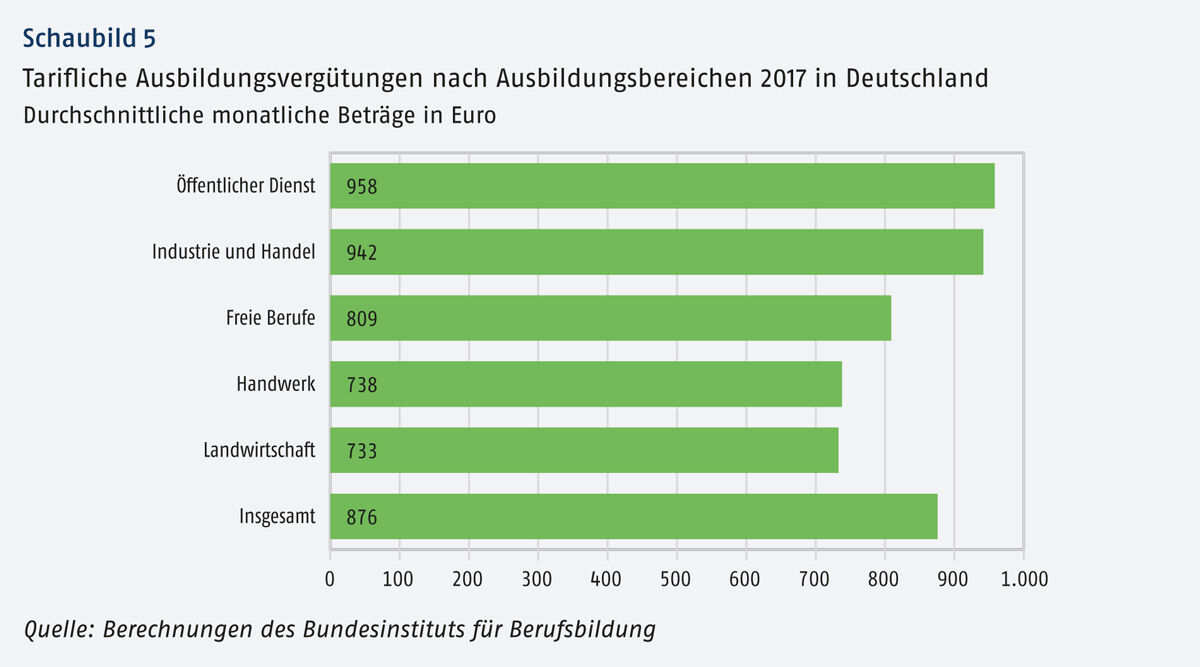 Zwischen den Ausbildungsbereichen unterschied sich das Vergütungsniveau 2017 in Deutschland