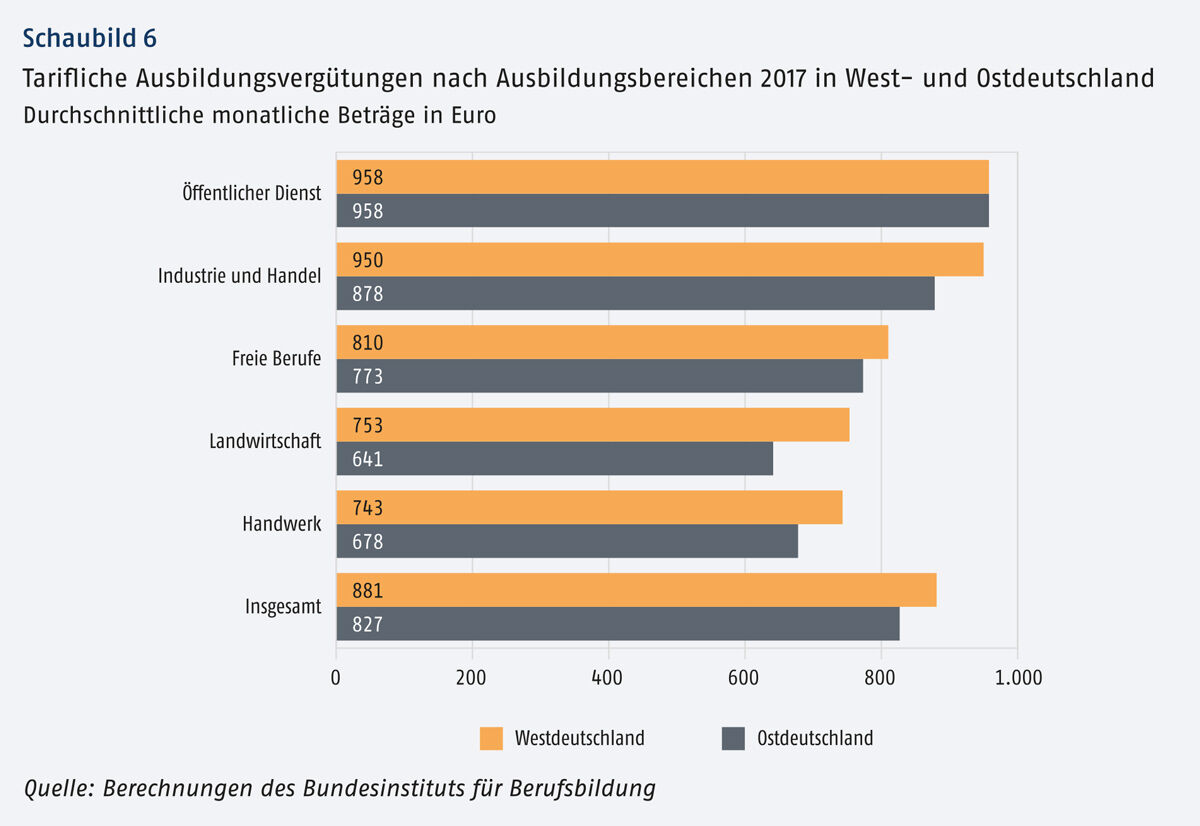 Ausbildungsvergütungen. Die durchschnittlichen Vergütungen lagen hier im Osten jeweils deutlich
