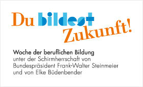 Das Motto "Du bildest Zukunft!" richtet sich an junge Menschen in beruflicher Bildung und die vielen Menschen, die sich als Berufsschullehrerinnen und -lehrer, Ausbilderinnen und Ausbilder, Prüferinnen und Prüfer oder als Arbeitgeberinnen und Arbeitgeber engagieren.