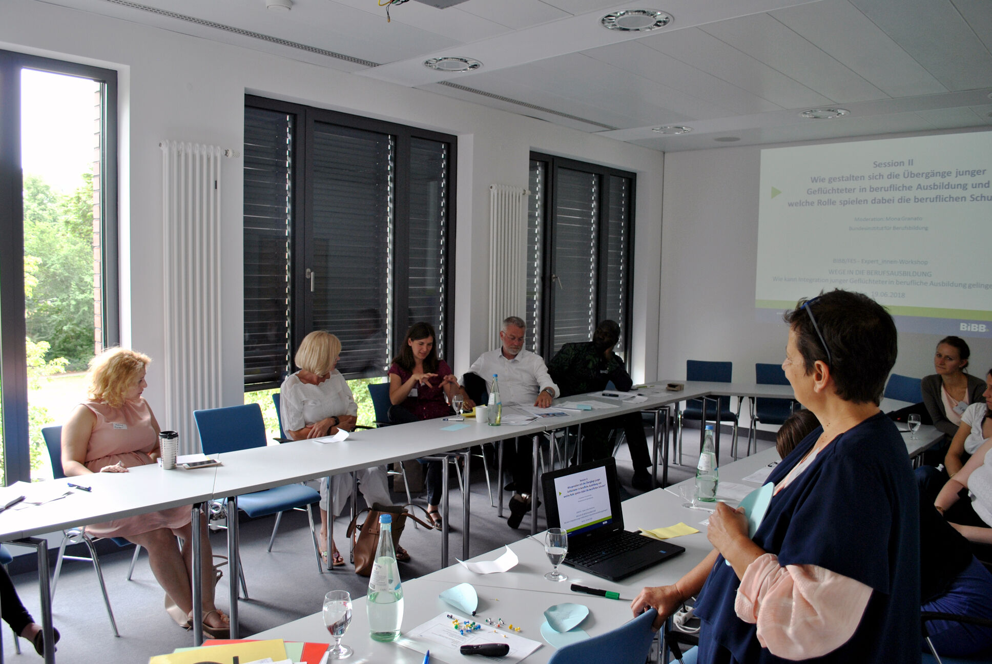 Wie kann also sichergestellt werden, dass möglichst viele junge Geflüchtete, die eine Ausbildung machen möchten, eine Möglichkeit dazu finden und ihre Ausbildung dann auch abschließen können? Am 19.06.2018 widmete sich das Bundesinstitut für Berufsbildung (BIBB) gemeinsam mit der Friedrich-Ebert-Stiftung (FES) dieser Frage. Mit mehr als 60 Expertinnen und Experten aus Wissenschaft, Praxis und Politik wurden wissenschaftliche Befunde und Praxisberichte vorgestellt, Handlungsbedarfe konkretisiert und verschiedene Lösungsansätze diskutiert. Der Fokus lag dabei bei den Zugangsmöglichkeiten zu einer dualen Berufsausbildung, der Beschulung und den Vorbereitungsangeboten an Berufsschulen sowie der Steuerung und Zusammenarbeit auf lokaler Ebene.