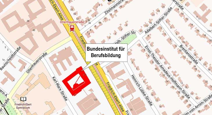 Hier finden Sie Wegbeschreibungen und Anfahrtspläne zur Vorbereitung Ihrer Anreise zum Bundesinstitut für Berufsbildung. Wir freuen uns auf Ihren Besuch!