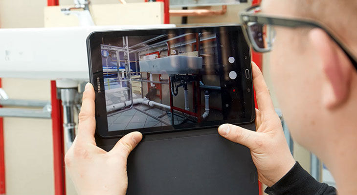 Fachkräfte im Handwerk planen Bäder oder montieren Treppenanlagen zunehmend mit Hilfe von Augmented Reality (AR). Dazu benötigen sie digitale Kompetenzen. Mit dem Projekt „ARihA“ hat das Bildungszentrum Schweinfurt die AR-Technologie in die überbetriebliche Ausbildung integriert.