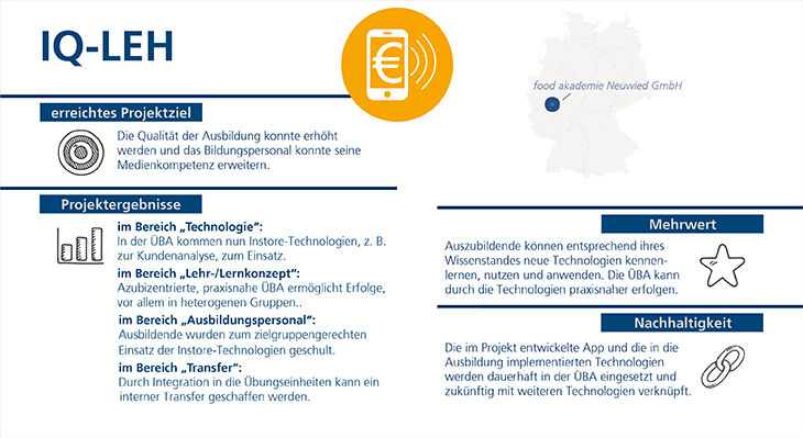 Mit dem Projekt „IQ-LEH“ hat die foodakademie Neuwied die überbetriebliche Ausbildung im Lebensmitteleinzelhandel mit digitalen Technologien angereichert. Mitarbeiterin Christina Heinz berichtet im Interview, was vom Projekt bleibt und welche Herausforderungen das Projektteam gemeistert hat.