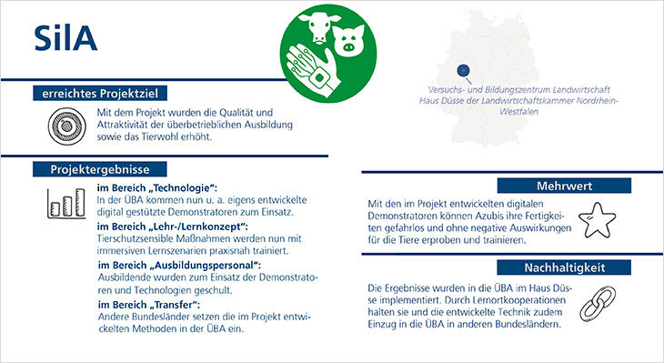 Eine Aufgabe der landwirtschaftlichen Ausbildung ist es, umfassende Kenntnisse der Nutztierhaltung zu vermitteln. Mit dem Projekt „SilA“ hat sich das Versuchs- und Bildungszentrum Landwirtschaft Haus Düsse zum Ziel gesetzt, einen Teil dieser Kenntnisse mit digitalen Technologien zu vermitteln.