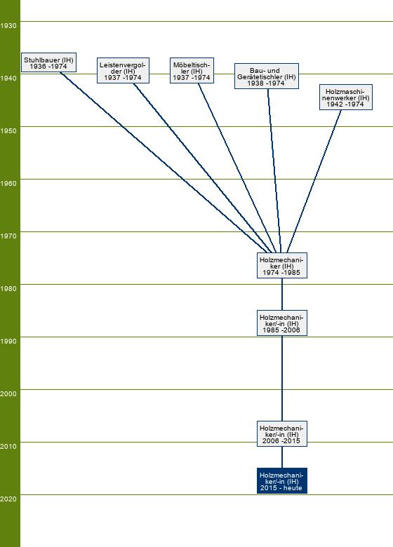 Genealogie Holzmechaniker/Holzmechanikerin - FR Herstellen von Möbeln und Innenausbauteilen, Herstellen von Bauelementen, Holzpackmitteln und Rahmen, Montieren von Innenausbauten und Bauelementen