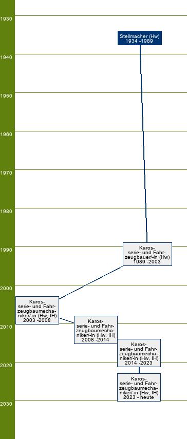 | 30.06.1934 | laut Bekanntmachung des Reichswirtschaftsministers vom 30.06.1934 erstmals im Verzeichnis der Gewerbe, die handwerksmäßig betrieben werden können, unter Nr. 61 – Stellmacher (Wagner) – aufgeführt [Deutscher Reichsanzeiger und Preußischer Staatsanzeiger Nr. 151 vom 02.07.1934]; vom 30.06.1934 (BGBl. I S. Deutscher Reichsanzeiger und Preußischer Staatsanzeiger Nr. 151 vom 02.07.1934) |