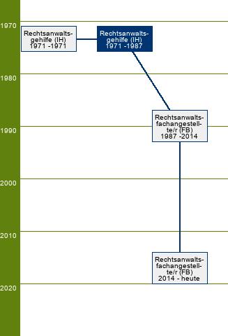 | 24.08.1971 | anerkannt durch Verordnung über die Berufsausbildung zum Rechtsanwaltsgehilfen, zum Notargehilfen und zum Patentanwaltsgehilfen vom 24.08.1971 BGBL. I S. 1394 vom 24.08.1971 (BGBl. I S. 1394) |