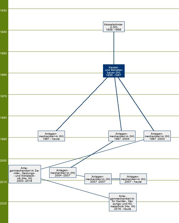 Anerkannt durch Änderung der bisherigen Berufsbezeichnung Kesselschmied durch Erlass des BMWi vom 04.08.1956 - II A 4 - 2262/56 (BWMBl. Nr. 16/56, S. 390); vgl. Anlagenmechaniker, Fachrichtung Apparatetechnik. vom 04.08.1956