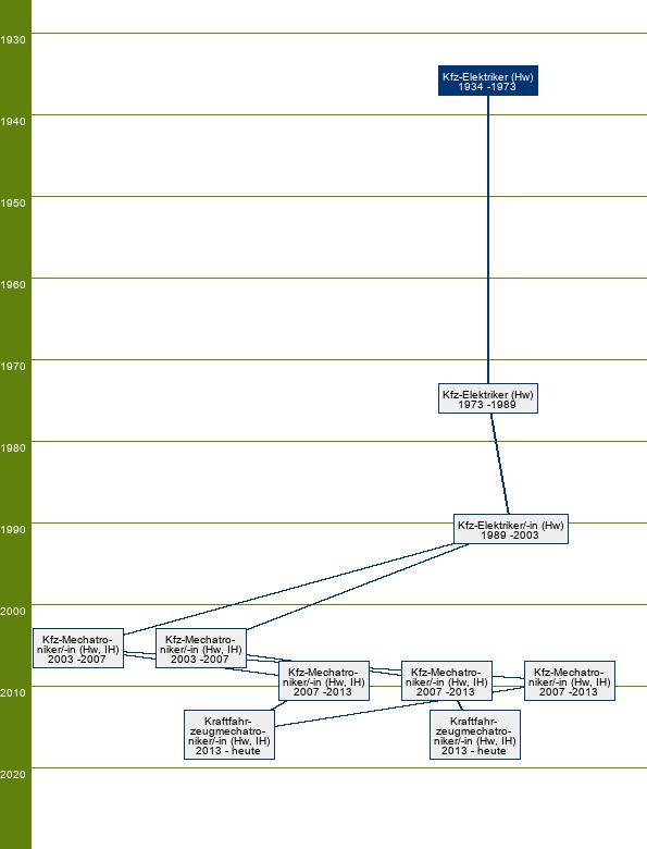 laut Bekanntmachung des Reichswirtschaftsministers vom 30.06.1934 erstmals im Verzeichnis der Gewerbe, die handwerksmäßig betrieben werden können, unter Nr. 33 – Kraftfahrzeugreparateure – als Autoelektriker aufgeführt [Deutscher Reichsanzeiger und Preußischer Staatsanzeiger Nr. 151 vom 02.07.1934]; vom 30.06.1934 (BGBl. I S. Deutscher Reichsanzeiger und Preußischer Staatsanzeiger Nr. 151 vom 02.07.1934)