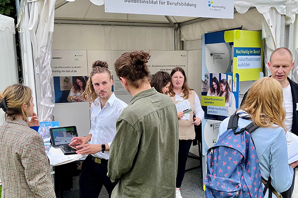 Wir waren mit dem Programm Nachhaltig im Beruf am 4. und 5. Juni bei der Woche der Umwelt in Berlin vertreten. Es war eine tolle Veranstaltung mit vielen interessierten Besucherinnen und Besuchern und spannenden Gesprächen. Das Umsetzungsprojekt ZBN gab erste Einblicke in die spielebasierte Bildungs-App, die für die nachhaltigkeitsbezogene Qualifizierung des ausbildenden Personals erweitert wird. Die Woche der Umwelt wird vom Bundespräsidenten in Zusammenarbeit mit der Deutschen Bundesstiftung Umwelt ausgerichtet.