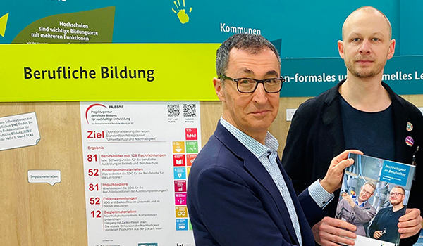 Fünf inspirierende Messetage voller neuer Kontakte! Im Februar waren wir mit dem Programm NIB und dem Umsetzungsprojekt BBNELobby auf der didacta 2025 vertreten. Vielen Dank allen Standbesucher/-innen für den regen Austausch! Ein besonderes Highlight zum Messeabschluss: Unser Kollege Moritz Ansmann präsentierte mit Bundesbildungsminister Cem Özdemir die Broschüre „Nachhaltigkeit im Berufsalltag.“