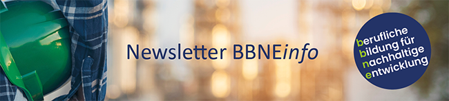 Dieser Newsletter ist ein Informationsservice des BIBB zu den Themen Berufsbildung für nachhaltige Entwicklung (BBNE), dem Förderprogramm „Nachhaltig im Beruf – zukunftsorientiert ausbilden“ und anderen interessanten Entwicklungen rund um Nachhaltigkeit in der beruflichen Aus- und Weiterbildung.
