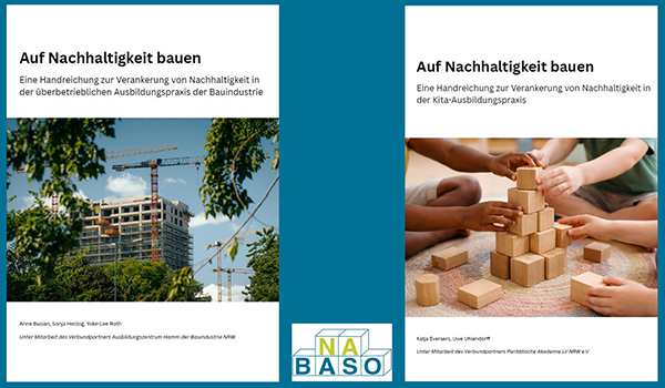 Im Rahmen des NIB-Projekts NABASO sind jeweils für die beiden Berufsfelder Bau- und Sozialwesen tolle Bildungsmaterialien entstanden. Neben einer inhaltlichen Fundierung zur BBNE bieten die Handreichungen Ausbilderinnen und Ausbildern der Bauindustrie sowie Praxisanleiterinnen und -anleitern im Kita-Bereich Checklisten und Reflexionsfragen direkt für die Ausbildungspraxis – so wird Nachhaltigkeit integrativ in der Praxis erfahrbar und anwendbar.