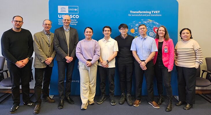 The exchange was complemented by a visit to the International Centre for Technical and Vocational Education and Training (UNESCO-UNEVOC) based in Bonn. Here, the delegation was warmly welcomed by the Head of UNESCO-UNEVOC Friedrich Huebler. During the meeting, UNESCO-UNEVOC’s data-based services were presented to the delegation, such as country data on TVET and the Global Skills Tracker. The latter is an AI-based tool that uses real-time job data to show which skills are in particular demand worldwide – by country, sector and profession.