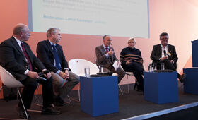 The digital transformation of the world of work and its effects on schools and companies formed the main focus of the podium discussion in Stuttgart, which looked at the topic of “Vocational education and training – performance and challenge”. Taking part in the debate alongside Professor Esser were Susanne Eisenmann, Minister of Education and Cultural Affairs of the State of Baden-Württemberg and current President of the Standing Conference of the Ministers of Education and Cultural Affairs of the Länder in the Federal Republic of Germany (KMK), Hessen’s Minister of Education and Cultural Affairs Alexander Lorz and Ernst John und Eugen Straubinger, the chairs of the Federal Association of Teachers at Commercial Schools and of the Federal Association of Teachers at Vocational Schools respectively.