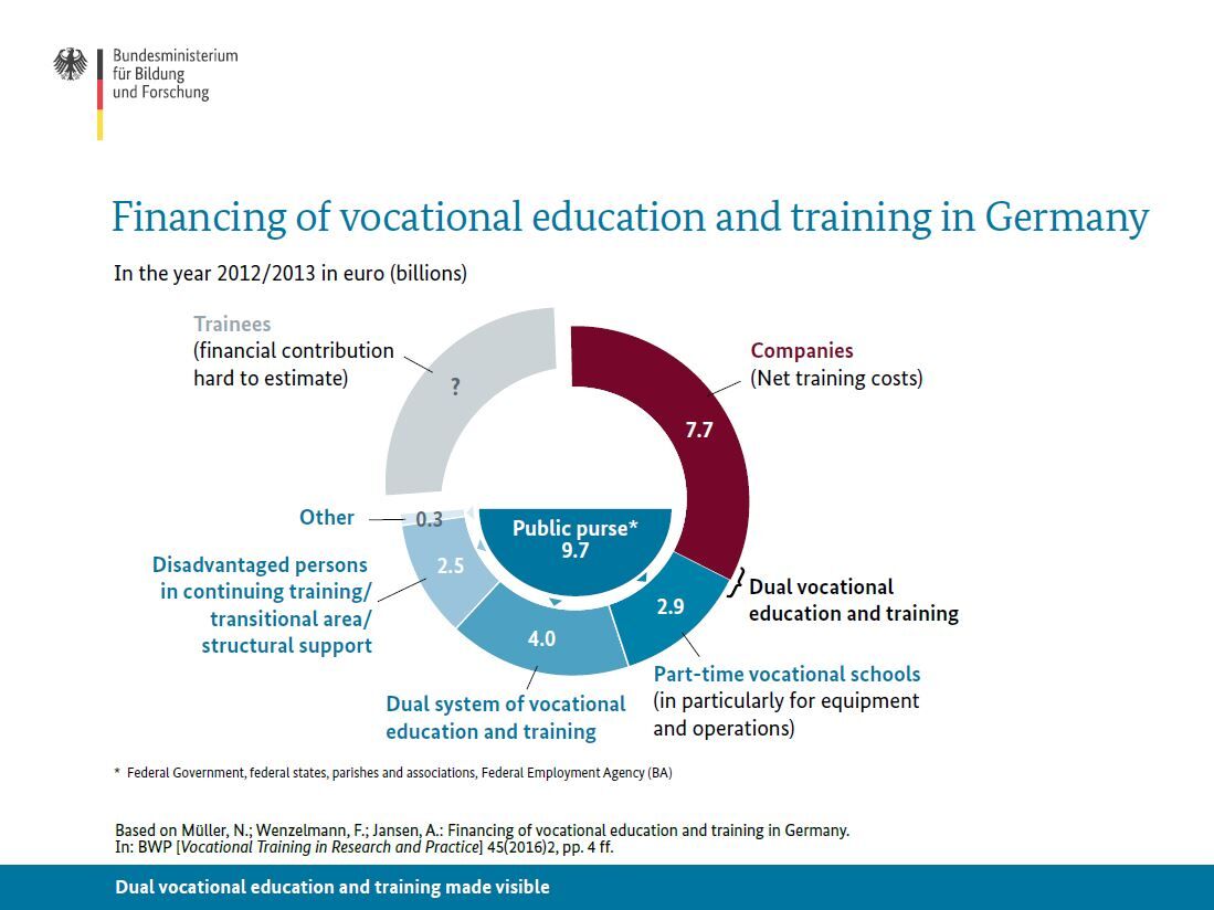 The legal framework and the financing of the German dual vocational system is based on a long tradition and includes various parties who are involved in this framework.